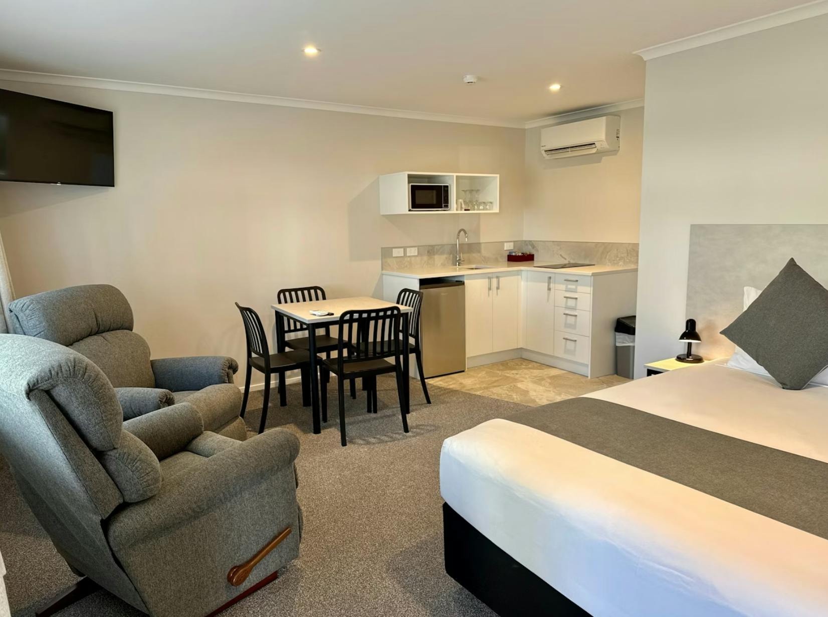 Newly Renovated - Spacious One bedroom Suite featuring a King bed & 2 single beds, spacious ensuite with shower , kitchenette with microwave & hot plates, tea & coffee, smart TV, dining table and La-Z-Boy arm chairs